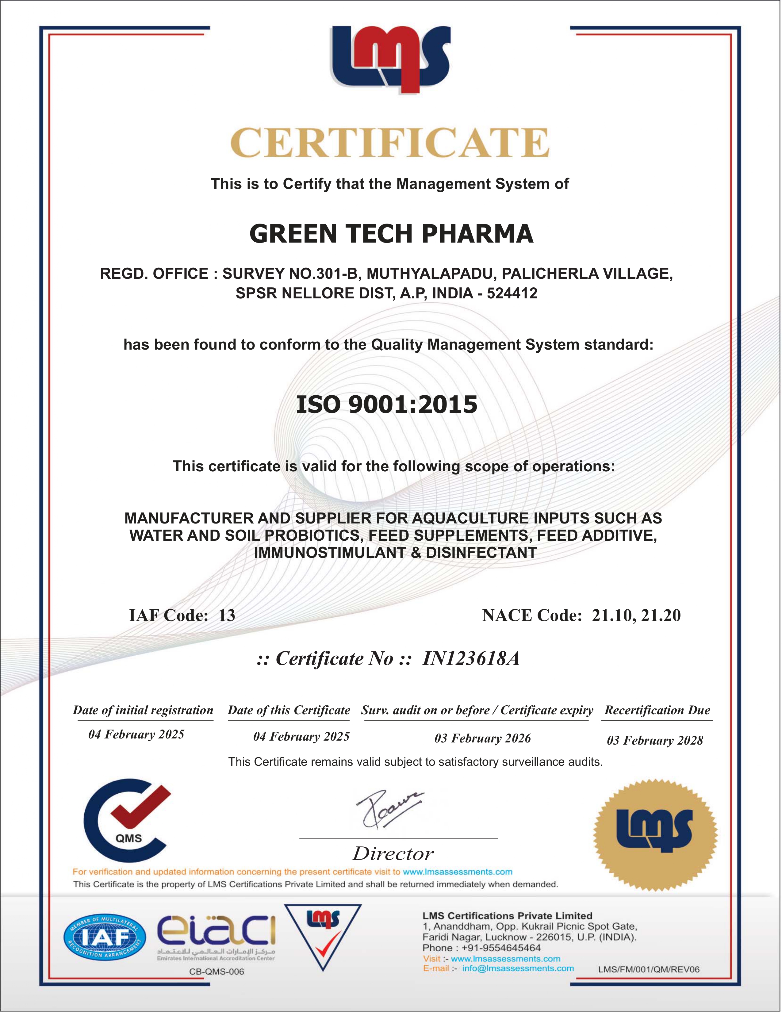 In Green Tech Pharma, all most all activities has been standardised in the framework of International standards. The processes are being audited by external experts; improved as per their finds. After successful result reports, our company has got certified in ISO 9001:2015 & WHO-GMP