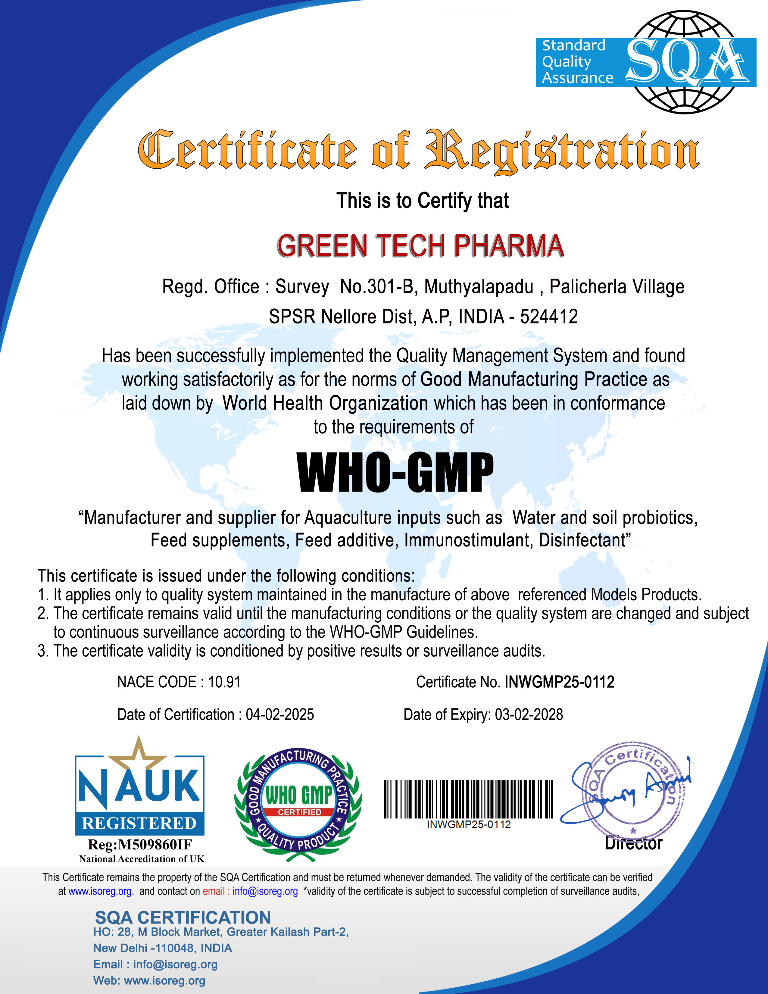 In Green Tech Pharma, all most all activities has been standardised in the framework of International standards. The processes are being audited by external experts; improved as per their finds. After successful result reports, our company has got certified in ISO 9001:2015 & WHO-GMP